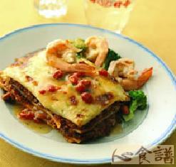 (3)将烤箱预热至200℃,将作法(2)材料放入烤15∼20分钟,取出后盛入盘中,再将作法(1)淋汁淋在派饼上。