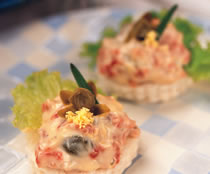 4.将熟蛋黄压碎,放在作法3的成品上,再以红椒粉、迷?香做点缀即完成。