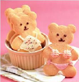 4.取一大型塑胶袋,把面糰置于袋中用手压平,使用桿面棍桿约0.5公分的厚度,用模型压出形状,再放入烤箱,以180℃烤约20分钟即取出,待饼干冷却后备用。