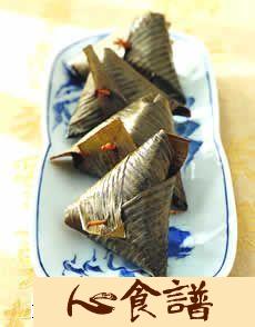 )将粽叶汆烫后沥干水份备用。