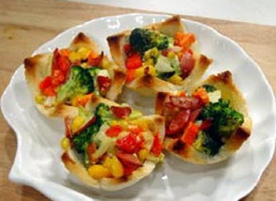 2、取几只大小相同的小碗,底部分别抹上少许黄油,将面包片的四边去掉,切成正方形分别按入碗中,拌好的沙拉分别放在面包中,烤箱预热180度?200度后,放入烤15分钟左右即可。