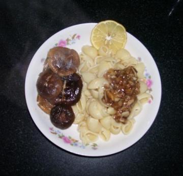 香菇150克,意大利贝壳面200克,蚝油2汤匙,大蒜3瓣,黄油1汤匙,食盐半汤匙,黑胡椒粉适量