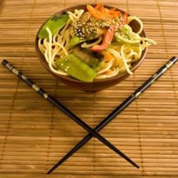 生的意大利面条225克,蔬菜油60毫升,新鲜蘑菇140克,切片,胡萝卜110克,切碎,红灯笼椒45克,切片,洋葱1个,切碎,蒜2头,捣碎,新鲜豆芽210克,葱50克,切碎,玉米淀粉8克,鸡汤235毫升,海鲜酱60毫升,蜂蜜30毫升,酱油15毫升,鲜姜2克,切碎,辣椒粉0.5克,咖哩粉0.5克