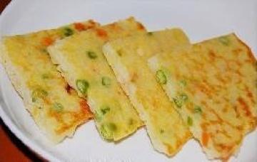 豌豆、隔夜饭(饭一定要先热热哦)、胡萝卜切丁、面粉、盐等调料。