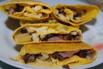 煎饼里面放入炒好的土豆,或者圆葱,入锅煎好