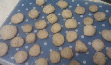 3. 捏成小球,在锡纸上压成小圆饼,锡纸上不用刷油。