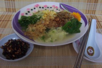 盘里。剩下的就分成2大碗“清汤粄面”。下一步当然就是