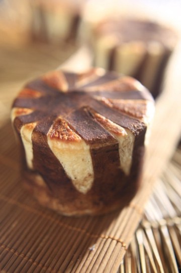 6.将包好欧克皮的面团沾上可可粉,划上刀口。