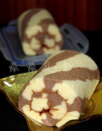 第一种:双色蛋糕卷菜谱,蒸香蕉双色蛋糕做法
