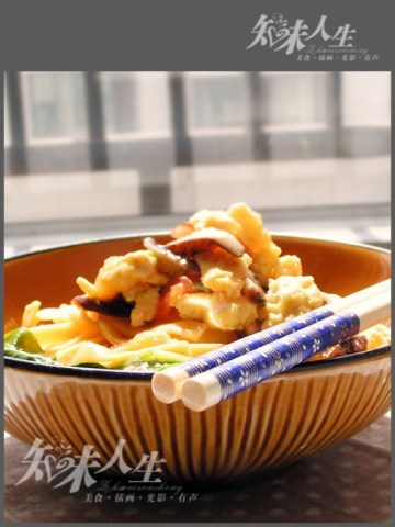 6:加糖,盐等调味。倒入炒好的鸡蛋。