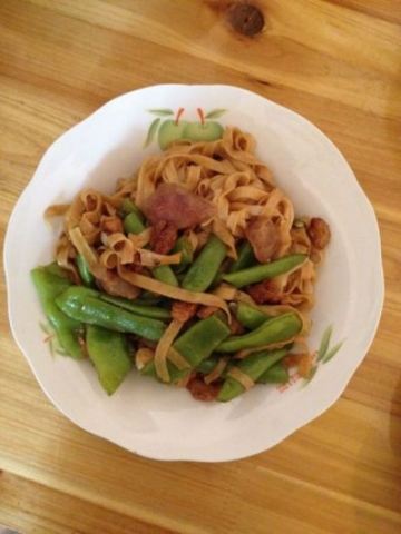 扁豆,面条,猪肉,葱,淀粉,盐,鲍鱼汁,鸡精,酱油,生抽,料酒,蒜