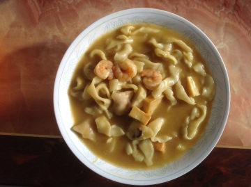 第五种:面食菜谱咖喱鲜虾鱼板面做法