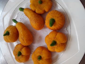 南瓜茸、糯米粉500克、白糖180克、黄油50克、澄粉50克、吉士粉30克、豆沙馅、面包糠