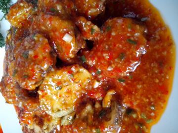 3. 茄子是很吸油的, 所以炒的时候锅内只需放很少的油甚至不放油, 然后将茄子里渗出来的油到进锅内, 待锅烧到5成热的时候, 到入四川辣豆酱翻炒, 待到油变红, 豆瓣酱水份快收干的时候放入切好的蒜, 姜沫, 香味出来后, 倒入碎猪肉, 炒熟后倒入甜辣椒酱, 翻炒后倒入炸好的茄子, 盐, 炒匀后加入少许清水. 大火烧至水份快干时, 加入味精, 然后水淀粉勾芡, 最后放入葱花, 起锅装盘.