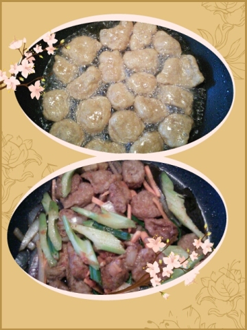 元宝炸水饺、芹菜饺子、土豆小煎饼、芹菜饺子2、红烧素食辣面筋
