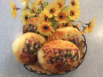 面食菜谱香葱培根面包美食做法、所需材料 美食及所需要厨具设备推荐,通过25位厨师确认分享整理菜谱烹饪技法推荐香葱培根面包、黑胡椒培根面包、全麦培根面包、培根面包,培根面包卷,心形培根面包。