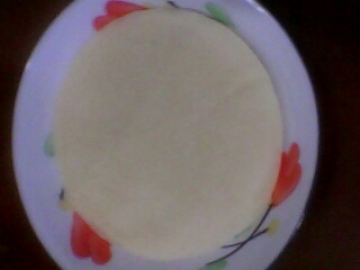 3.平锅热锅后,小火,将饼放入锅内待看到一面起小泡后,立即翻到另一面,这是即可看到饼会自动裂开小口,沿小口把饼撕开即是两张薄饼,制作过程仅3分钟,依次类推。