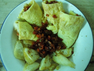 第五种:面食菜谱煎馒头块胡萝卜末蛋卷做法
