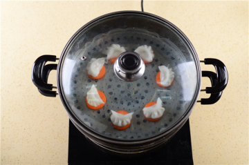 5.包入内陷捏紧收口放蒸锅中,上气儿后蒸5-8分钟.
