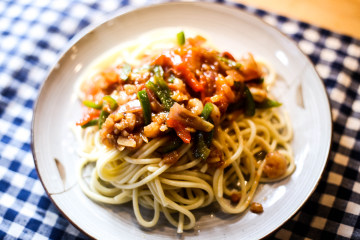 5、将炒好的酱汁盖在意面上,拌匀即可。