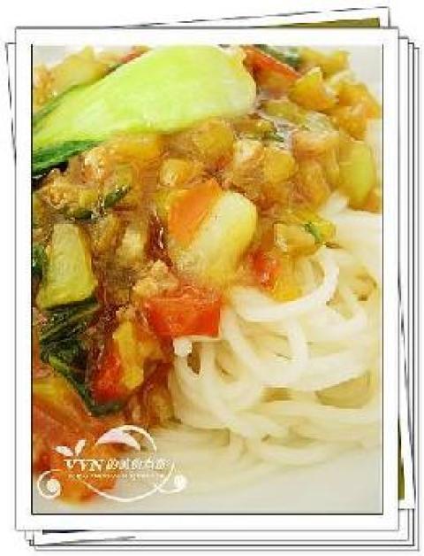 7. 面盛于碗中,上面浇上西红柿鸡蛋卤即可。