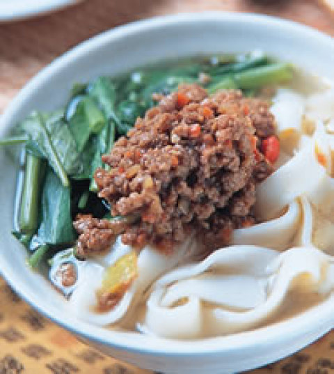 猪肉末200克,宜宾芽菜半包,40克,郫县豆瓣2汤匙,植物油4汤匙,新鲜切面200克,豆苗100克,葱2根,酱油1汤匙,红油2汤匙,味精1/3茶匙,清水800毫升