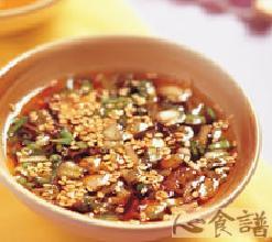 蒜泥1/2大匙,葱姜水100㏄,芝麻酱3大匙,香油1大匙,辣油1大匙,醋1小匙,柠檬汁1大匙,盐1小匙,糖1小匙
