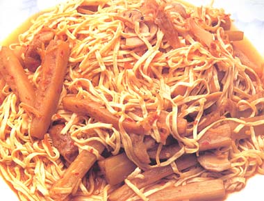 第一种:面食菜谱,鲜牛肉炆伊面做法