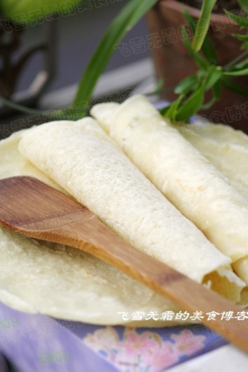1.擀成厚约0.4cm的薄片,然后裁成大小合适的长方形。