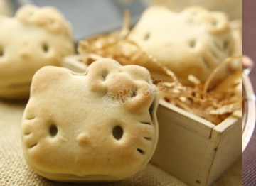 1.做法:1.除黄油外的所有材料混合,揉成光滑的面团后再加入黄油,揉至有薄膜2.发酵至2.5倍大后,分两团其中一团是120g,排气滚圆,中间发酵15分钟3.将120g面团的搓成橄榄型后放入kitty面包模具中。进行最后发酵4.发酵45分钟后,预热烤箱,170度烘烤约30分钟。