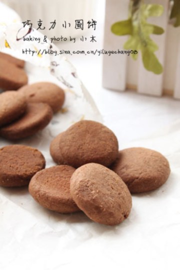 13.把烘焙好的小饼取出,不要断电,炉温降到160度,趁热把巧克力按在饼干上,按时用力均匀,压到饼干四周有一点点裂缝最好。