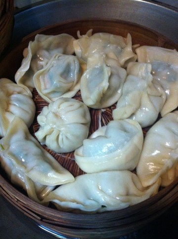 香菇水饺、素菜包子、油爆虾熏鱼五花咸肉面。