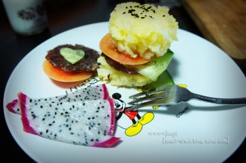 主料:先去麦德龙买的汉堡坯,沙拉酱和芝士