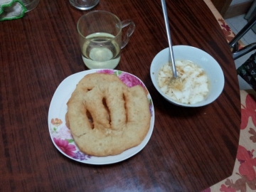 肉松面包、韭菜鸡蛋饼、油泼扯面、蟹肉钟水饺
