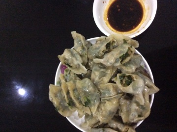 8.煮: 烧一锅水,水开的时候把包好的水饺放进去,等水再开的时候加点冷水。不一会儿水饺就变成一个个“白胖子”浮起来了!搭配好了自己喜欢的沾料,你还不赶紧滴~~