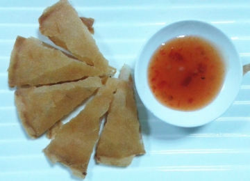 草虾仁300g,蛋白1/2个,春捲皮4张,盐1/4茶匙,白胡椒粉1/2茶匙,酱料:2大匙