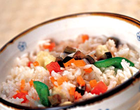 主料:稻米100克,番茄20克,洋葱(白皮)20克,胡萝卜10克,青椒10克,鸡肉20克,调料:色拉油10克,盐2克