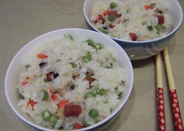 香肠含有盐,所以煸炒时不能加太多盐,要不焖饭会太咸。