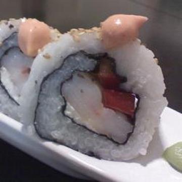 6、切段,摆盘即成。食用时根据口味配上日本酱油或芥末。