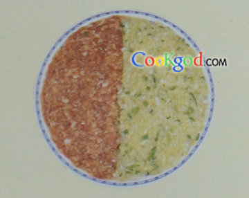 鲜肉馅占1/2,白菜、葱、姜占1/2