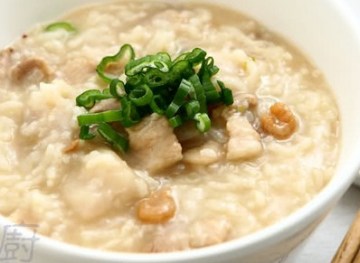 5. 煮至芋头与米粒熟透,最后加入所有调味料拌匀,盛出,洒上葱绿即可。