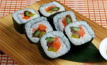 寿司里的“内容”给你充公发挥的空间,可以是罐装咸鱼籽、切成条的西式火腿、摊好后切丝的鸡蛋皮、黄瓜条、腌萝卜条等等