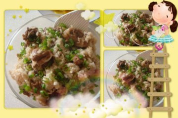 豆沙桂花甜饭、紫薯粥、排骨饭。