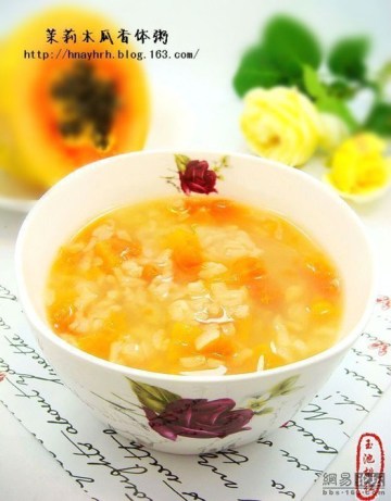 第五种:主食菜谱茉莉木瓜香体粥做法