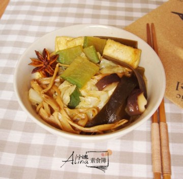 这个食谱的烩菜最好保证有萝卜、白菜、海带、豆腐的基础搭配,而其他食材可以根据个人喜好更换,比如换成金针菇,或加入少量粉条之类的。
