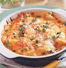 3.把煮好的饭放在烤皿中,铺上马自拉起司,放进烤箱烤约10分钟即可 (8分钟时撒上parsley.再推回去烤)。