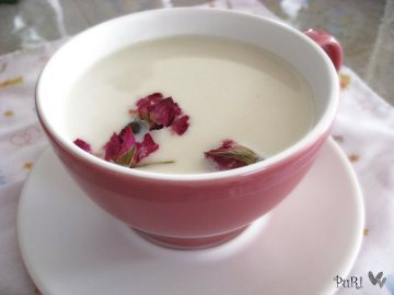 2、根据自己的口味加蜂蜜,加干玫瑰点缀即可。