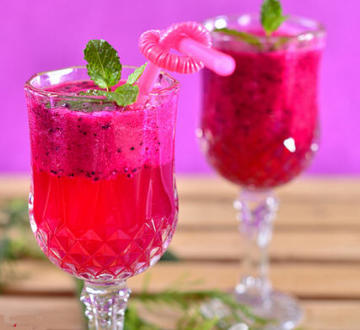 2、薄荷柠檬水,可以直接加冰块饮用。火龙果冰沙也如此。两者混合在一起,口感更丰富。按各人喜好哈。