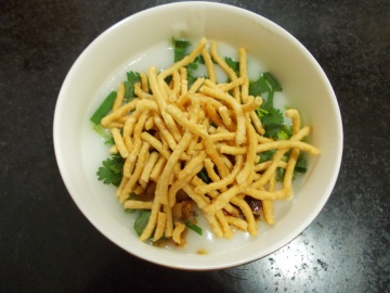 主料:馓子(超市有成品卖)、大米一小碗