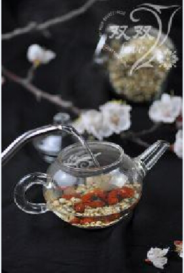 薏米仁60克,麦麸末30克,绿茶10克,白糖适量。